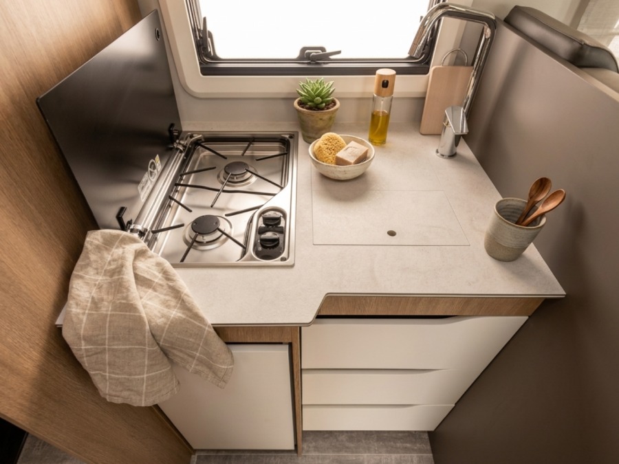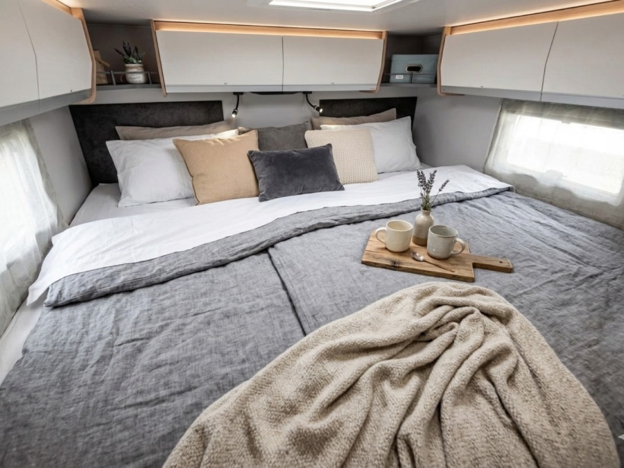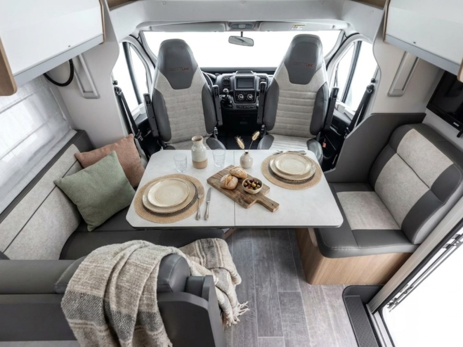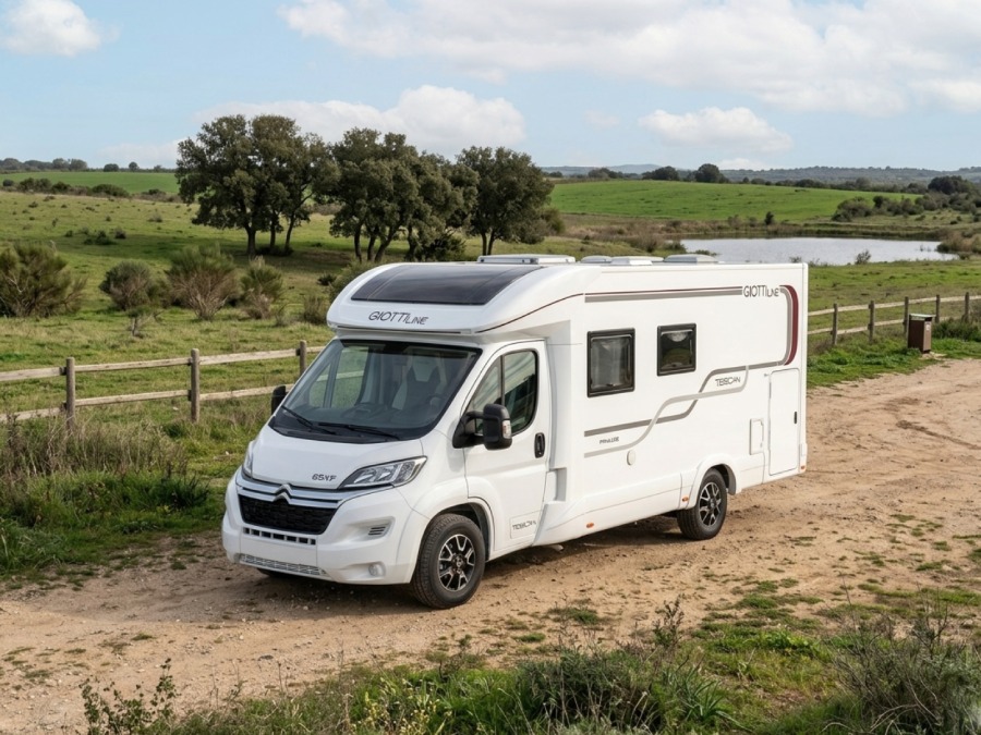 Autocaravana Giottiline Toscan 69XF, amplia, moderna y totalmente equipada, perfecta para viajar por Mallorca, España o Europa con total comodidad.